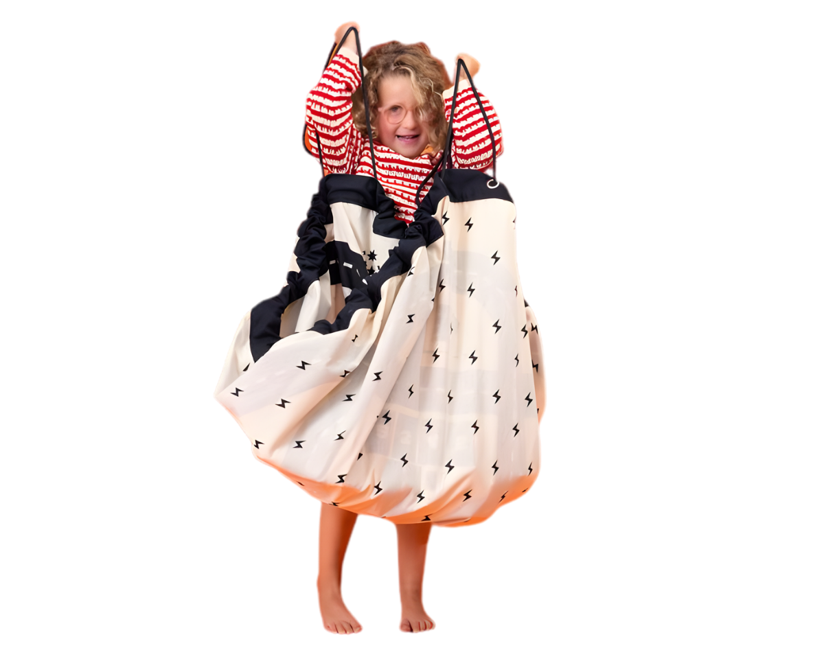The "noomad" by play&go™ 2-in-1 toy storage bag and playmat makes tidying up fun, fast, and functional. Unfold it to create a spacious play area where kids can enjoy their favorite toys – from LEGO® bricks and dolls to cars, balls, and building blocks. Done playing? Just pull the cords and voilà – everything is stored in seconds!