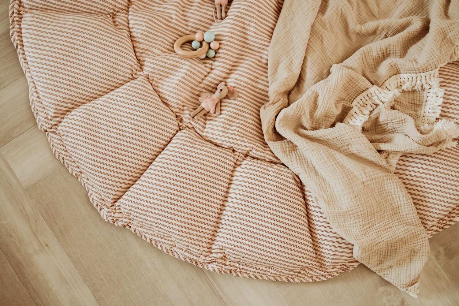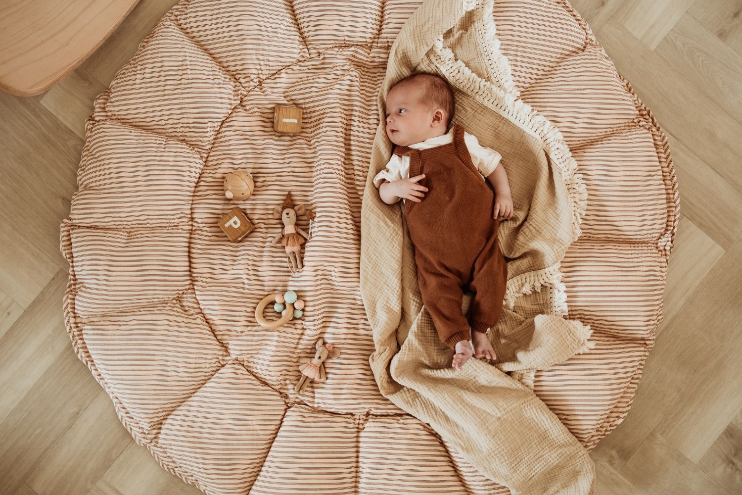 organic babyspeelkleed & cocon - stripes brown