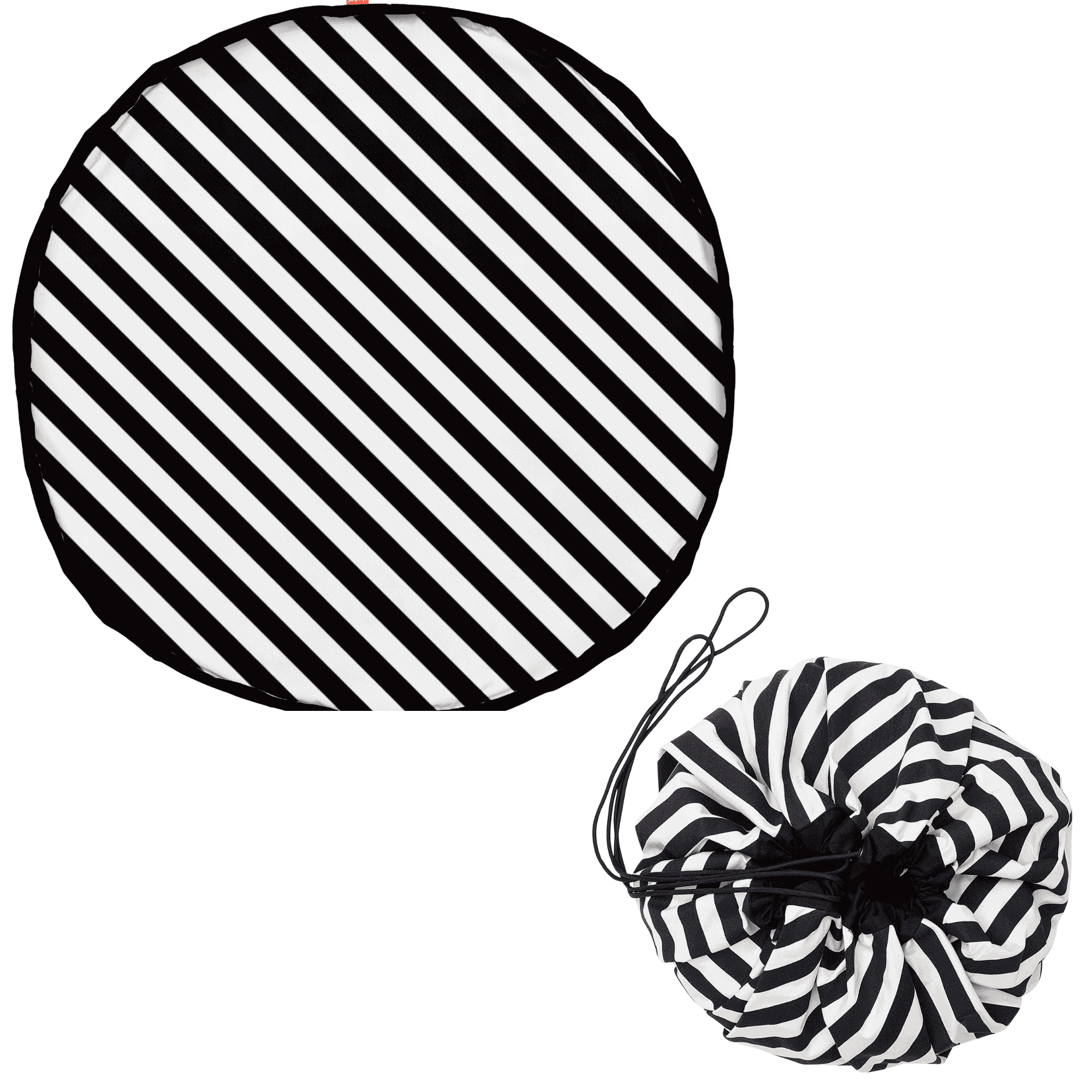 Met deze zwart gestreepte speelgoed opbergzak wordt speelgoed opruimen wel heel makkelijk. Deze 2 in 1 opbergzak voor speelgoed kan worden omgevormd tot een grote speelmat. Met één beweging wordt de mat weer omgetoverd tot een zak waar al het speelgoed in zit. Neem het speelgoed overal mee naartoe. Super handig wanneer je gaat logeren bij oma en opa maar natuurlijk ook perfect om het huis netjes te houden.